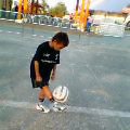 足とボールが紐で繋がってるみたいだ。